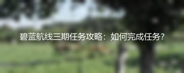 以上就是小编为大家带来的碧蓝航线三期任务攻略。希望对玩家们能够在游戏中顺利完成任务有所帮助。