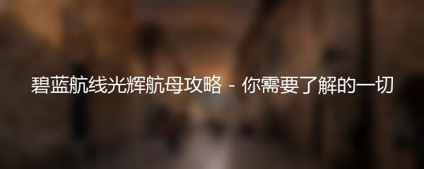 以上就是对碧蓝航线中光辉航母的简要介绍和攻略部分内容。希望能够帮助到玩家们更好地使用光辉航母,在战斗中取得更多的胜利!