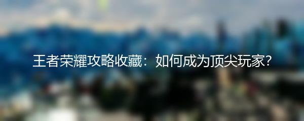 王者荣耀是一款备受玩家喜爱的手机游戏,畅销世界各地。但是,要在这个竞争激烈的游戏中脱颖而出并成为顶尖玩家不是一件易事。下面就是小编为大家带来的王者荣耀攻略收藏,助你成为顶尖玩家的方法和技巧。