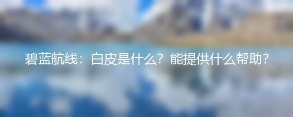 以上就是小编为大家带来的《碧蓝航线:白皮是什么?能提供什么帮助?》的攻略。希望对大家能有所帮助,祝各位航海愉快!