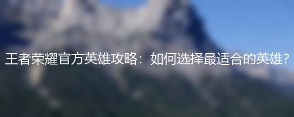 以上就是小编为大家带来的王者荣耀官方英雄攻略:如何选择最适合的英雄?通过熟悉英雄技能和属性,了解英雄的定位,根据游戏模式选择英雄,了解团队战术需求,以及尝试不同的英雄,你一定能够在王者荣耀中取得更多的胜利!
