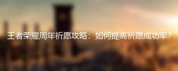 王者荣耀的周年祈愿活动即将开始,让我们来探索如何提高祈愿成功率,为自己的账号带来丰厚的奖励吧!