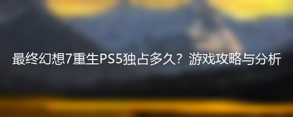 以上就是小编为大家带来的《最终幻想7重生PS5独占多久?游戏攻略与分析》。无论独占时间如何,这款游戏都将带给玩家们丰富的体验和令人难忘的冒险。玩家们可以按照攻略和技巧进行游戏,探索精彩的剧情和战斗系统。准备好迎接最终幻想7的重生吧!
