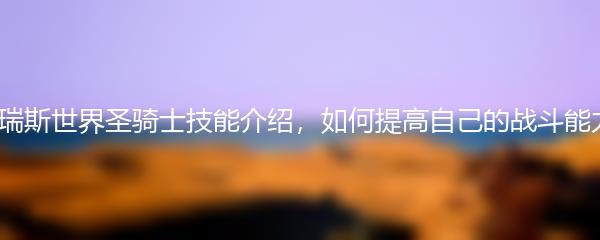 作为塔瑞斯世界中的精英职业之一,圣骑士以其强大的战斗能力和卓越的治疗能力而受到广大玩家的热爱。掌握合理运用圣骑士技能,不仅可以提高自己的战斗能力,还能在团队战中发挥重要作用。下面,就让我们来详细了解一下塔瑞斯世界圣骑士的技能吧。