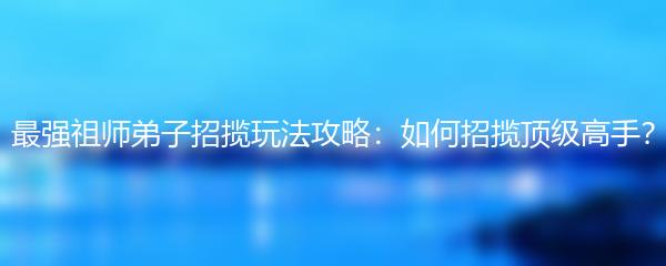 最强祖师弟子招揽玩法攻略主要包括以下几个关键点: