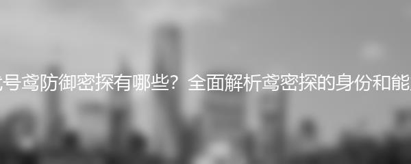 近几年,随着网络安全问题的日益严重,各国都纷纷成立了自己的网络防御部门。而在这些部门中,代号鸢防御密探备受关注。那么,究竟有哪些代号鸢防御密探?他们又拥有怎样的能力呢?本文将全面解析鸢密探的身份和能力。