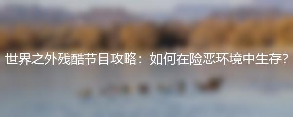 以上就是小编为大家带来的《世界之外残酷节目攻略:如何在险恶环境中生存?》的内容。希望对你参与节目有所帮助,祝你成功!