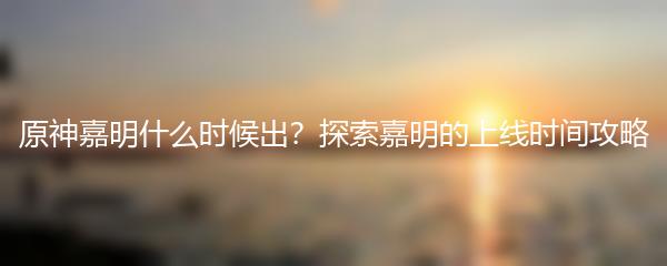 原神是一款备受欢迎的开放世界角色扮演游戏,嘉明是其中一名远程输出角色。要让嘉明变得更强大,需要突破并提升他的等级。那么,嘉明的突破材料有哪些呢?如何获取这些材料呢?下面就让我们来看看: