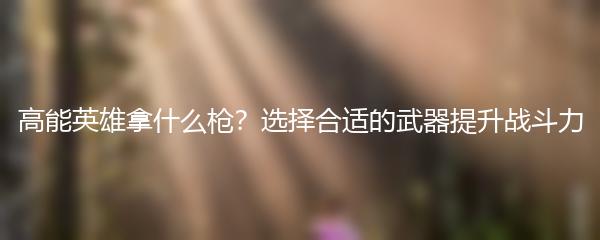 在《高能英雄》这款游戏中,选择合适的武器是提升战斗力的关键。不同的英雄有着不同的技能和属性,因此他们在战斗中使用的武器也各有特点。那么,在游戏中,高能英雄该拿什么枪呢?下面为大家分享一些选择建议: