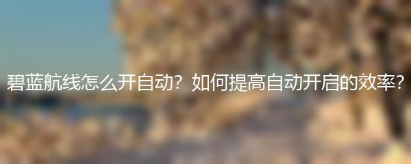 碧蓝航线是一款备受玩家喜爱的舰娘养成游戏,其中自动开启功能大大提高了游戏的便利性。但是,如何更好地利用自动开启功能,提高游戏效率呢?下面我们就来分享一些经验和技巧。