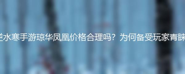 以上就是小编为大家带来的关于逆水寒手游琼华凤凰价格合理性和备受玩家青睐的攻略。希望对大家有所帮助,祝愿大家能在逆水寒手游中获得琼华凤凰,享受游戏的乐趣!