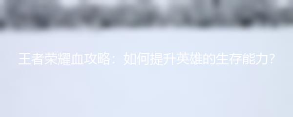以上就是小编为大家带来的王者荣耀血攻略,希望对广大玩家有所帮助。通过选择适合的装备,合理利用英雄技能,注意时机和位置,团队配合和交流,以及观察对手战术并调整策略,相信你的英雄生存能力必将大幅提升!加油,成为王者的路上不断进步吧!