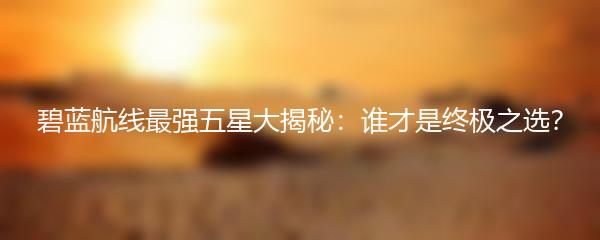 碧蓝航线是一款备受玩家喜爱的舰娘养成游戏,拥有众多五星舰娘供玩家选择。但在众多的五星舰娘中,到底哪位才是真正的终极之选?今天我们将为大家揭秘碧蓝航线最强五星舰娘。