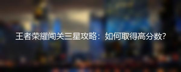 以上就是王者荣耀闯关三星攻略,希望以上技巧可以帮助您在闯关模式中取得更高的分数和奖励。挑战自我,成为王者!