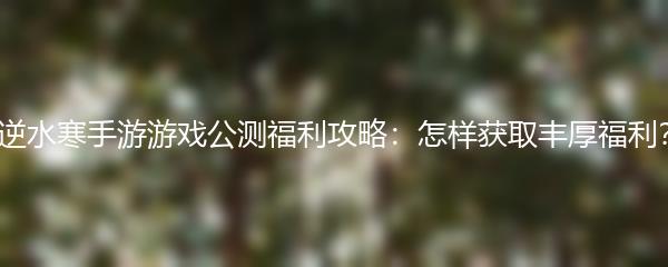 逆水寒手游即将迎来公测,你准备好了吗?参与公测不仅可以体验到精彩的游戏内容,还有丰富的福利等着你!想知道怎样获取逆水寒手游公测福利吗?快来看看小编为你整理的攻略吧!
