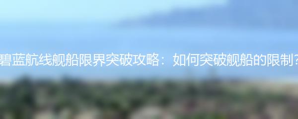碧蓝航线的舰船限界突破是提升舰船实力的重要手段。在游戏中,舰船的限界突破可以让它们在战斗中发挥更大的威力,提升生存能力和输出效果。那么,如何突破舰船的限制?下面是一些攻略,帮助指导您成功进行舰船限界突破。