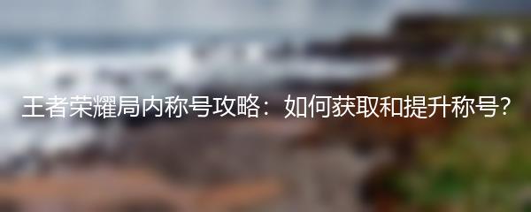 以上就是王者荣耀局内称号攻略,希望对大家有所帮助。通过获得和提升称号,展示自己的实力和成就,成为王者荣耀的巅峰玩家!加油吧,少年!