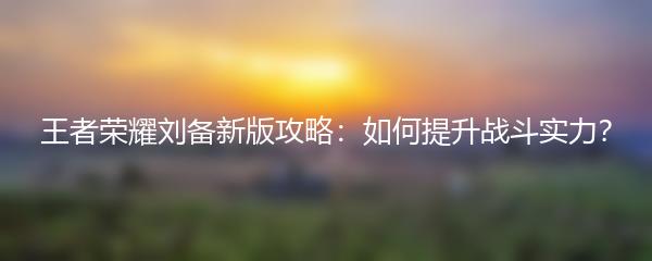 作为王者荣耀中备受瞩目的英雄之一,刘备在新版中经历了一些改动,对于喜欢使用刘备的玩家来说,掌握新版的攻略是非常重要的。下面就为大家带来刘备新版攻略,帮助玩家提升战斗实力: