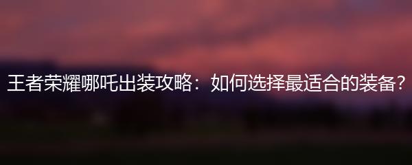 以上就是小编为大家带来的王者荣耀哪吒出装攻略,希望能对大家有所帮助。选择合适的装备将极大地提升哪吒的实力,让你在游戏中成为无敌的存在!