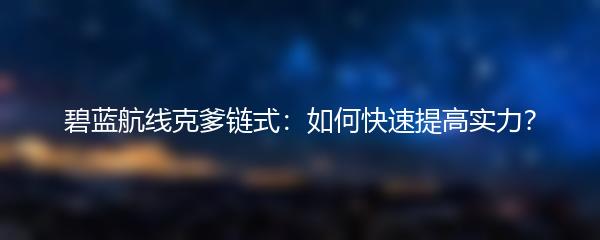 碧蓝航线的克爹链式让不少玩家头疼,如何快速提高实力呢?下面小编为大家分享一些实用的攻略: