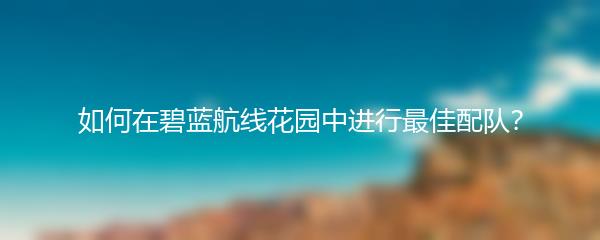 碧蓝航线是一款备受玩家喜爱的手游,其中花园功能更是深受大家青睐。那么,在花园中,如何进行最佳配队呢?下面为大家详细介绍。
