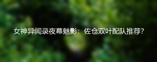 以上就是小编为大家带来的《女神异闻录夜幕魅影:佐仓双叶配队推荐?》。希望对大家有所帮助!