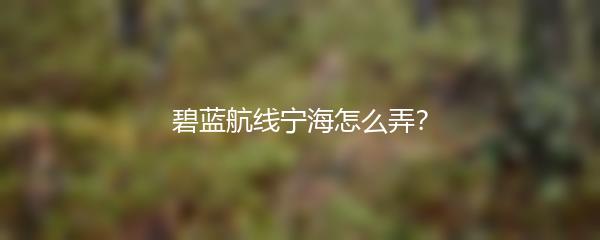 以上就是小编为大家带来的碧蓝航线宁海怎么弄的攻略,希望对你有所帮助!