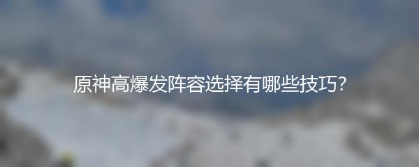 以上就是小编为大家带来的原神高爆发阵容选择有哪些技巧?希望对大家有所帮助!