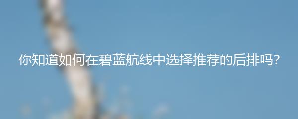以上就是小编为大家带来的“你知道如何在碧蓝航线中选择推荐的后排吗?”。