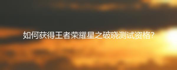 以上就是小编为大家带来的如何获得王者荣耀星之破晓测试资格的攻略。