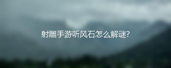 射雕手游中的听风石是一个经典谜题,许多玩家都纠结于如何解开它。下面小编为大家介绍一些解谜的方法: