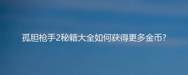 孤胆枪手2是一款刺激的射击游戏,想知道如何在游戏中获得更多金币吗?下面就为您介绍一些秘籍,让您在游戏中更加得心应手。