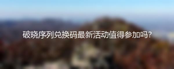 近期破晓序列推出了一场最新的兑换码活动,让众多玩家纷纷关注。那么这次活动值得参加吗?下面小编就为大家详细介绍。