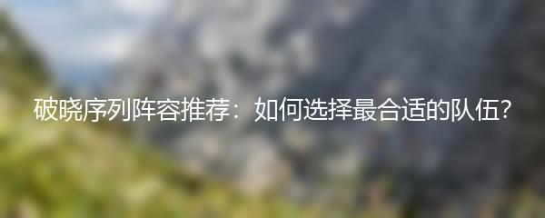 破晓序列是一款热门策略类游戏,组建一个强大的阵容对于取得胜利至关重要。那么,如何选择最合适的队伍呢?下面为大家介绍一些建议: