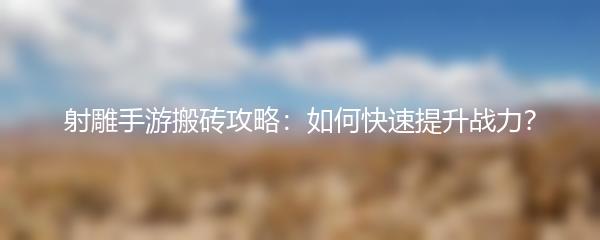 喜欢玩射雕手游的玩家们一定知道,想要在游戏中获得更好的体验,提升自己的战力是非常重要的。那么,在这个过程中,我们应该如何有效地搬砖呢?