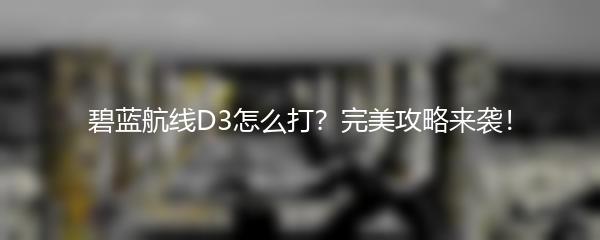 碧蓝航线D3怎么打?这是许多玩家关心的问题。下面为大家详细介绍。