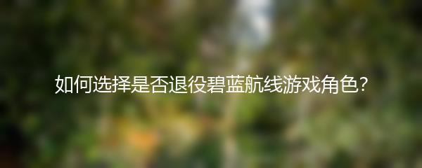 以上就是小编为大家带来的如何选择是否退役碧蓝航线游戏角色的一些建议,希望能帮助大家更好地管理自己的游戏角色。