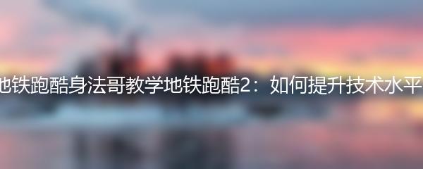 以上就是小编为大家带来的地铁跑酷身法哥教学地铁跑酷2:如何提升技术水平?