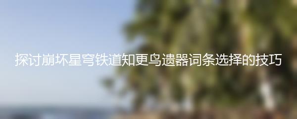 1. 什么是崩坏星穹铁道知更鸟遗器? 崩坏星穹铁道知更鸟遗器是一种稀有的文物,据说拥有神秘的力量。它在吸引众多探险者和考古学家的同时也引起了人们的好奇。 2. 如何选择崩坏星穹铁道知更鸟遗器的词条? 在选择崩坏星穹铁道知更鸟遗器的词条时,需要注意避免使用过于主观的描述,要力求客观准确。同时,可以参考相关专家的研究意见以及历史文献,确保选取到最为权威和准确的词条。 3. 为何重视崩坏星穹铁道知更鸟遗器的词条选择? 崩坏星穹铁道知更鸟遗器的词条对于了解其历史、文化意义以及神秘力量具有重要意义。选取合适的词条不仅有助于传播相关知识,还能提高人们对这一文物的认识和尊重。 4. 如何解读崩坏星穹铁道知更鸟遗器的词条? 要想准确解读崩坏星穹铁道知更鸟遗器的词条,需要结合其历史背景、文化意义和神秘传说进行分析。沉浸于词条背后的故事,更能感受到这一文物的神秘魅力。 5. 结语 以上就是小编为大家带来的探讨崩坏星穹铁道知更鸟遗器词条选择的技巧。希望能够帮助大家更好地了解和尊重这一神秘文物。