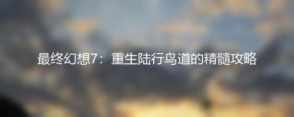 以上就是小编为大家带来的最终幻想7:重生陆行鸟道的精髓攻略