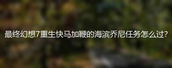 以上就是小编为大家带来的最终幻想7重生快马加鞭的海滨乔尼任务攻略!希望对大家在游戏中顺利完成这一任务有所帮助。