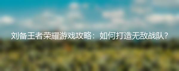 以上就是小编为大家带来的刘备王者荣耀游戏攻略:如何打造无敌战队?希望对大家有所帮助。