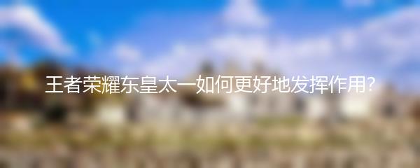 以上就是小编为大家带来的王者荣耀东皇太一如何更好地发挥作用的攻略,希望对大家有所帮助!