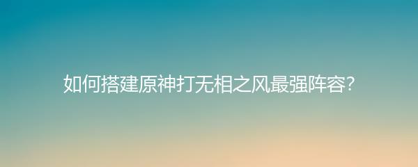 在搭建无相之风的最强阵容时,需要根据各个角色的技能和特点来进行合理的队伍搭配,以达到最佳的团队协作效果。