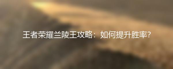 以上就是小编为大家带来的王者荣耀兰陵王攻略:如何提升胜率?希望对大家有所帮助!