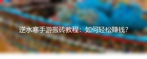 综上所述,想要在逆水寒手游中轻松赚钱并不难,关键在于掌握一些搬砖的技巧和策略。希望以上的内容对您有所帮助,祝您在逆水寒手游中获得丰厚的收益!