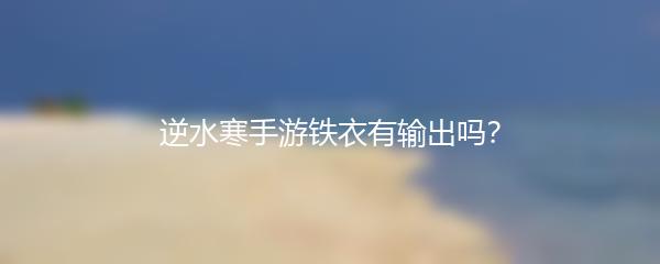 以上就是小编为大家带来的逆水寒手游铁衣有输出吗?