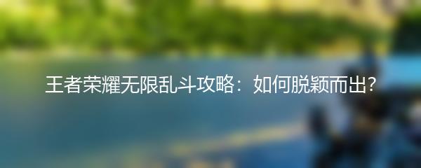 以上就是小编为大家带来的王者荣耀无限乱斗攻略:如何脱颖而出?