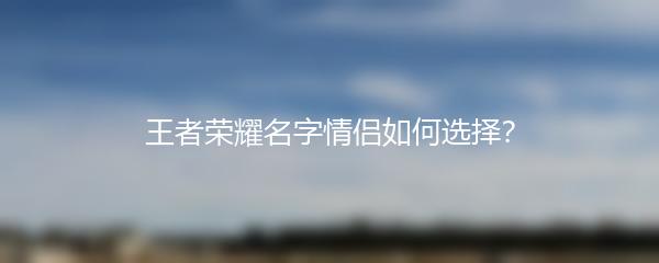 在选择王者荣耀名字情侣时,首先要了解彼此的喜好。考虑到游戏中的角色和风格,选择一个适合双方的名字。