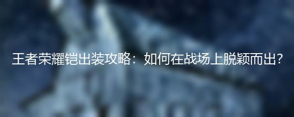 以上就是小编为大家带来的王者荣耀铠出装攻略:如何在战场上脱颖而出?